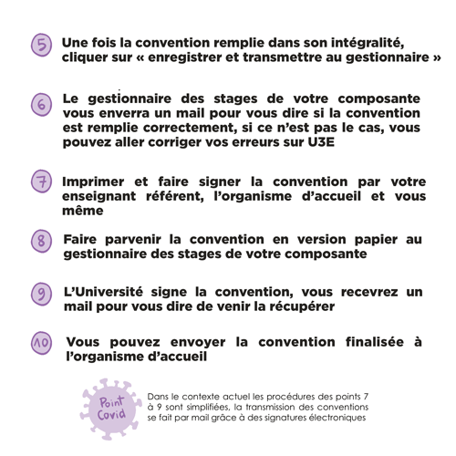 Le stage fait partie des études et doit faire l'objet d'une convention de stage qui fixe les engagements respectifs du stagiaire, de c'est pourquoi, pour pouvoir vous émettre une convention de stage vous devez être régulièrement inscrit sur le parcours concerné pendant toute la durée du stage. Enfin, pour répondre à une question récurrente :