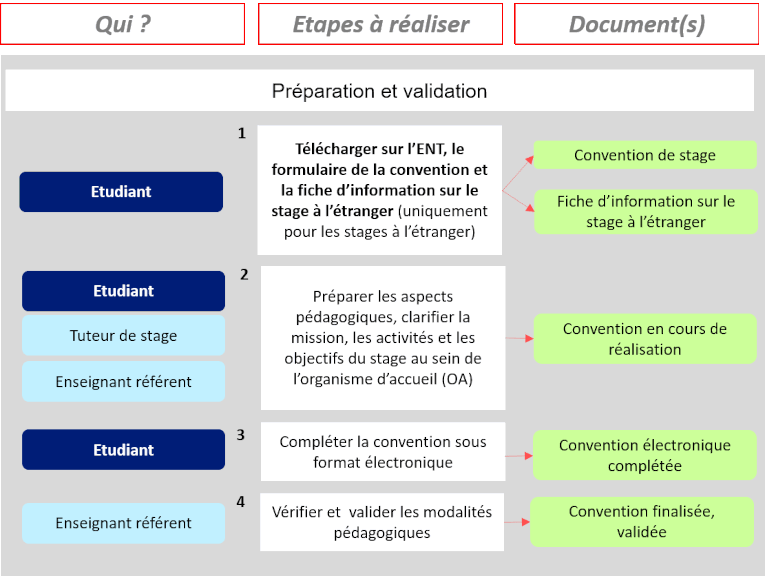 Dans le premier cas, l'étudiant n'a pas besoin de faire de démarche particulière. Attention cependant, si vous êtes étudiant et que vous faites un stage n'ayant pas de lien direct avec votre cursus pédagogique, vous devez obtenir l'accord de votre université sur la mission spécifique que vous avez. L'obtention d'une convention de stage se restreint généralement aux personnes bénéficiant du statut d'étudiant.